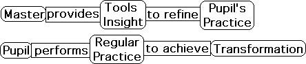 The Master attempts to refine technique and intent, yet the Student must do the work. The Master's function is to provide the proper tools and point in the right direction. Using these tools and insights the Student must move down the Path on his own.