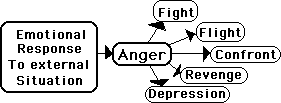 The Revenge and Fight responses are linked. The Person first evaluates the possibility of winning or losing. (Because of the emotional nature of Anger, many times one will overestimate one’s personal power - getting into unnecessary losing battles.) However on the chance that one’s emotion doesn’t overcome one’s reason and that one perceives a losing battle with the Fight response, then the same individual frequently resorts to the Passive Aggressive Revenge response. This means punishment is meted out just as in the Fight response, but that the punishing behavior is preceded by retreat. It is still based in retaliation never the less. In some ways Revenge is more insidious because it is not direct. However in certain circumstances, it is the only response that is available. The Fight and Revenge responses most frequently lead to accelerating external destruction because they pour gasoline onto the emotional fire.