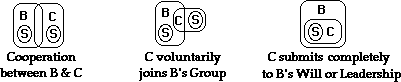 The middle situation is when C joins B’s group, submitting to B’s leadership externally but maintaining one’s internal sense of self with the choice to belong and/or comply.