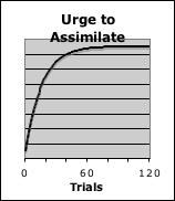 The graph on the right exhibits the growth of residual energy over 120 trials (iterations). As mentioned, residual energy is associated with the urge to assimilate. Until it is utilized, this chunk of assimilation energy remains intact.