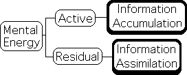 We hypothesize that mental energy has 2 components: information accumulation (active energy) and information assimilation (residual energy). Active mental energy is utilized when the Mind is observing and relating recent data. Residual mental energy is utilized when the Mind assimilates relevant information.