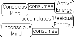 When we are conscious, we are continually engaged in the process of observing and relating information. This process utilizes the active component of mental energy. As the active energy is consumed, the assimilation energy (residual) builds. As long as we are conscious, the residual energy builds faster than it is consumed. In other words, the Conscious Mind, i.e. Attention, can’t keep up. The observing/relating process can only go on for so long. The information digestion system must shut down to completely consume this residual energy.