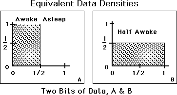 Now our Data can more accurately reflect the state of affairs. Instead of being required to say that the subject was completely awake or completely asleep we can say that he was awake or asleep to a certain degree. The percent of sleep plus the percent of awake always equals 100 percent. Now the number thrown into the Data Box each hour will reflect the density of the Awakeness that hour. We can now define Data Density.