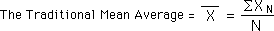 The traditional Mean Average of a set of Data is the sum of all the Data in the set divided the number of Data Bytes in the set. This is shown in the equation below.