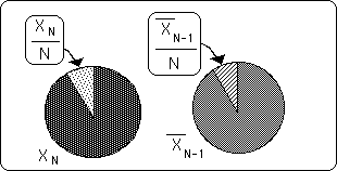 Notice the residue, the piece of pie on the right that is used up, so to speak. When talking about Decaying Averages, this precipitate, this leftover attains significance. {See Decaying Averages Notebook.}