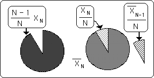 This equation shows that the New Average is a function of the New and the Old Average. The New Data part is the real impact of the New Data upon the New Average. Similarly the Old Average part is the real impact of the Old Average upon the New Average. The potential impact of the New Data before it enters the picture is 1/N. The potential impact of the Old Average, independent of magnitude, is (N-1)/N.