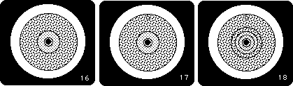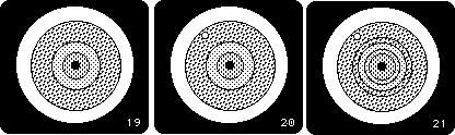 The pressure reaches a breaking point. Earthquake! The organism reaches out. The new Data Point falls in the Ring of Potential at last, frame 17. What a rush! The excitement is overwhelming. The boredom is dissipated with the expanding Realm, frame 18. A shrinking Realm causes boredom. An expanding Realm dissipates Boredom.