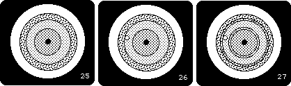 This human organism, adjusts his boundary lines, frame 25. He is becoming addicted to the Rush. He shoots into the area, which was previously, frames 16 & 19, in the Ring of Potential. Now it is in the Realm of Probability. Although it is in the Lesser Realm, it is still in the predictable range, yielding no great Rush of the higher Deviations. Furthermore the Realm still increases, while the Ring of Potential shrinks further, frame 27.