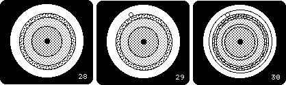 Still addicted to the Rush of the higher Deviations, but unsuccessful in the last attempt, the human organism, after adjusting the new boundary lines, frame 28, shoots beyond the Ring of Potential into the Ring of Imagination, frame 29. The Boredom Principle has inspired this organism to extend past the Boundary of Actuality into the Ring of Imagination in order to experience the Rush and avoid predictability. However the cost is that the Realm of Predictability, Probability, increases. This time, however, the boundary of Actuality increases, frame 30.