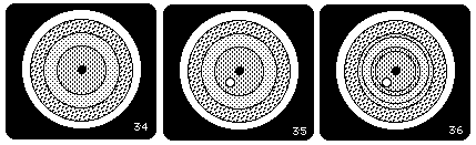 The organism, having been through this cycle before, realizes it will still take a lot of energy, without that much return, to reach the Ring of Potential or beyond. Hence our human relaxes, shooting for the middle of the Realm of Probability, frame 35. It is a predictable move, but it shrinks the Realm of Predictability and increases the Ring of Potential Unpredictability, frame 36.