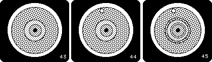 Unable to take the pain of boredom caused by a shrinking Realm any longer, frame 43, the organism breaks out of the Realm into the Ring of Potential, frame 44, giving the organism his long awaited Rush. This again increases the Realm again and shrinks the Ring of Potential, frame 45. The cycle continues.