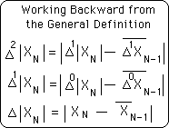 In terms of calculation, the definitions for the different Scalar levels are prohibitive. The above definitions and derivations are logically derived but are impractical for computation. To find the 6th Scalar for the Nth Data Piece, one needs the 5th Scalar of the Nth Data Piece and the 5th Directional. But to find the 5th Scalar one needs the 4th Scalar and so on. Below is a more practical computational formula based upon the stored Deviations. In the derivations below we eliminate the need to know the Scalars on the prior levels. This simplifies computation of Scalars considerably.
