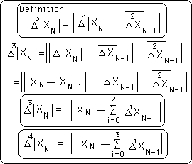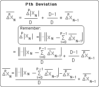 The progression to the general level of absolute change is quite straightforward. I'll leave the proof for a more accomplished mathematician. Verbally the theorem goes like this. The Pth Scalar equals the absolute difference between the Present Data and the sum of all the Past Deviations including the Original Deviation.
